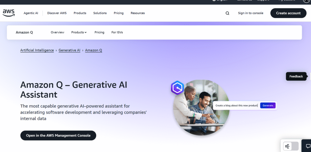 Amazon Q is AWS’s big push into workplace AI. It bridges analytics, coding, chat, and enterprise data in one assistant.
